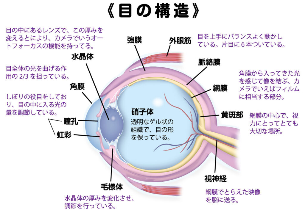 水晶体の厚みを変化させ、調節を行っています。 ※近視の進行や視力回復に深く関わる筋肉です。 |